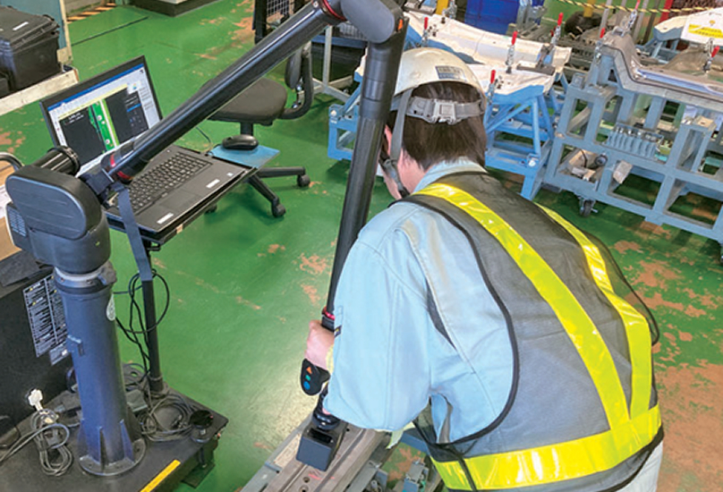 お客様が提示する要求精度に基づき検査治具の仕様を検討・製作し、その治具を用いて評価を行います。評価では、ベクトロンやハンディスキャンなどの三次元測定機器による精度解析、マイクロスコープによる溶接断面検査を実施し、客先技術標準で定められた基準を満たす製品品質を確認・作り込みます。さらに工程監査を通じ、製品品質のみならず工程品質も評価・保証します。