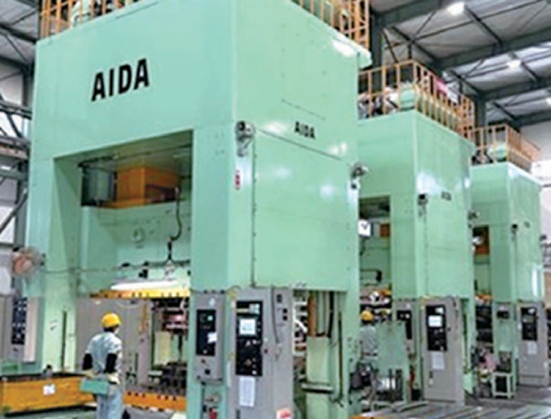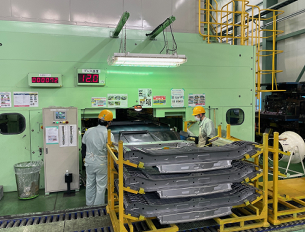 自動車のボディ、フレーム、足回り部品などの板金部品を、プレス機械と金型を使って成形しています。