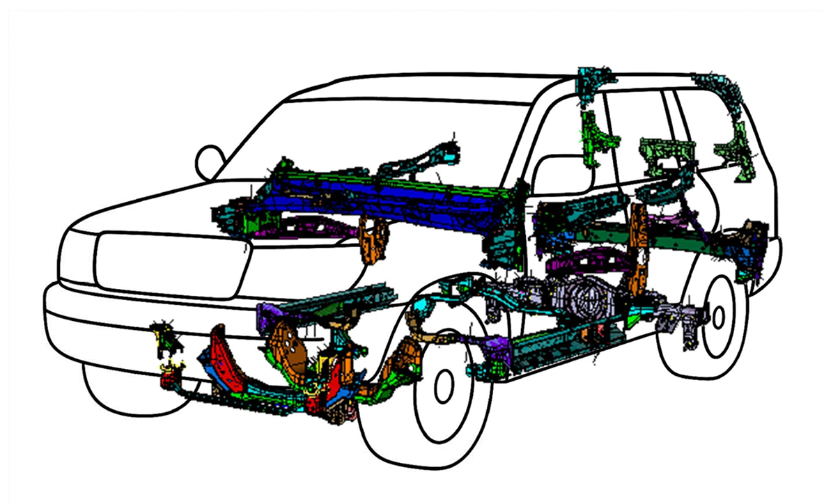 CAE(Computer Aided Engineering) を用いて、プレス加工時の実際のパネルの変形をシミュレーションし、割れ・しわ・板厚減少・スプリングバックなどの問題を事前に予測・評価する技術です。